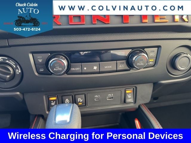 Inside, the Frontier PRO-4X offers a premium driving experience with features like the Fender Premium Audio System, Heated Front Seats, Leather Seat Trim, and Wireless Charging for Personal Devices. The Nissan Door-to-Door Navigation and Traffic Sign Recognition keep you connected and informed, while the Auto-Tilt & Slide Sunroof and Heated Steering Wheel add a touch of luxury to every journey.