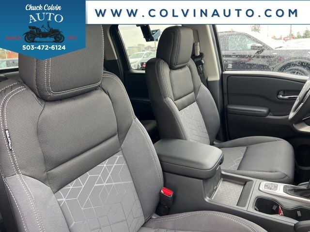 But the Frontier SV is more than just a workhorse. It's packed with a host of premium features that elevate the driving experience. The SV Convenience Package includes a wealth of convenient and tech-savvy amenities, such as a remote engine starter, heated front seats, a heated leather-wrapped steering wheel, and a 120V power outlet in the bed - perfect for powering your tools or camping gear on the go.