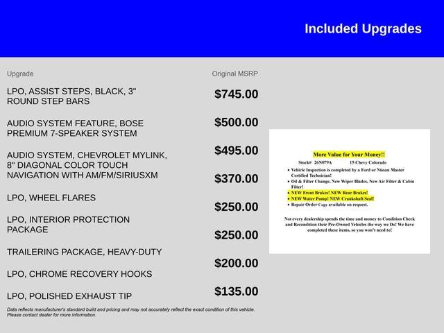 Whether you're tackling tough terrain, hauling heavy loads, or simply seeking a capable and comfortable daily driver, this 2015 Chevrolet Colorado Z71 is the perfect choice. Experience the perfect blend of power, capability, and refined style that only a Colorado can deliver. Schedule a test drive today and let us show you why this truck is the perfect fit for your lifestyle.